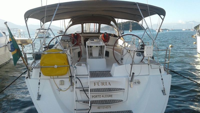 EQUIPAMENTOS: Ar condicionado, Music player: AM/FM, CD, AUX e USB, Geladeira, Freezer, Fogão, Bimini (toldo), Sprayhood (sanefa), Aquecedor de água (boiler), Guincho elétrico, Chuveiro no cockpit, Churrasqueira, Bote inflável, Agulha magnética, GPS / Plotter no Cokpit, Rádio VHF, Medidor de velocidade, Profundímetro, Piloto automático, Inversor para pequenos aparelhos 350wats, Gerador 220 (tomadas internas com gerador em funcionamento)