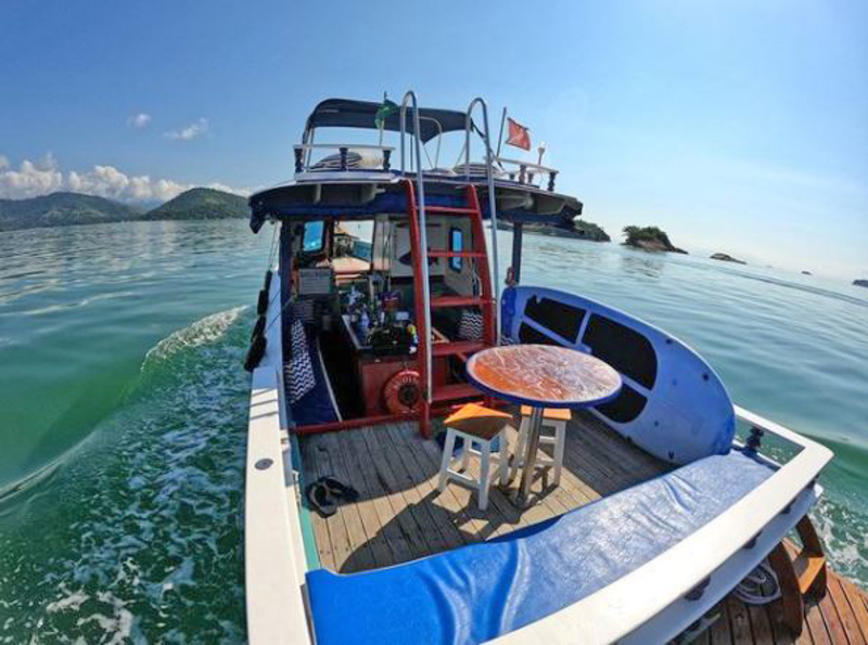 The embarcation offers: sweet water shower, fruits, floaters, mask with snorkel and grill.