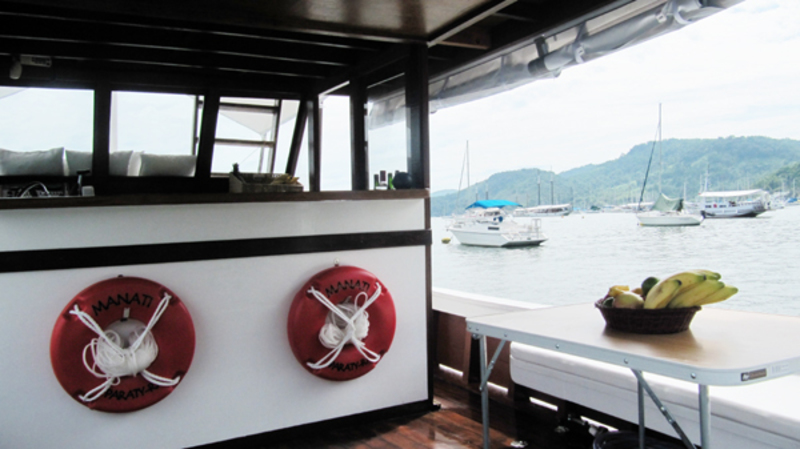The vessel offers: bathroom, dinghy, optional bar service, freshwater showers, rain protection and mask with snorkel