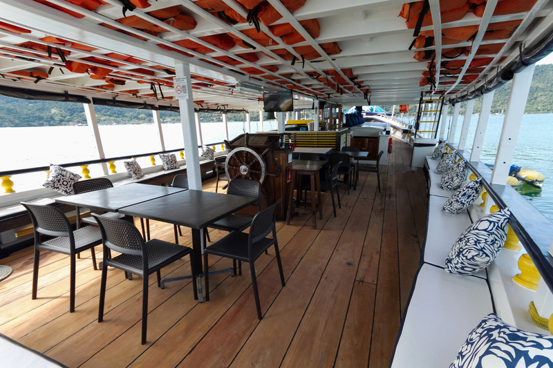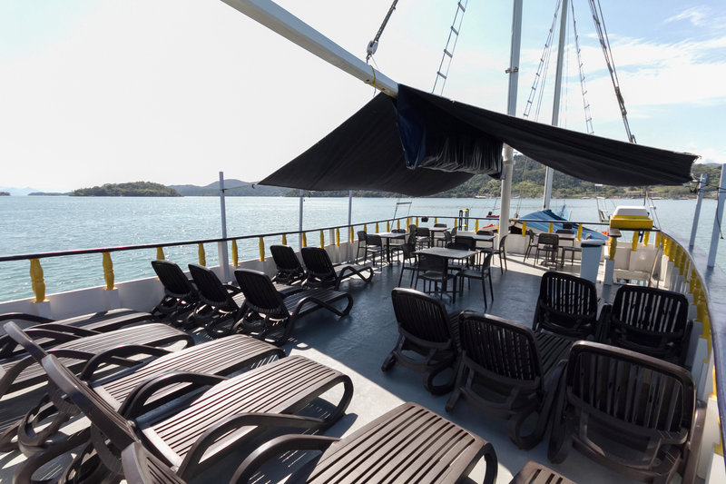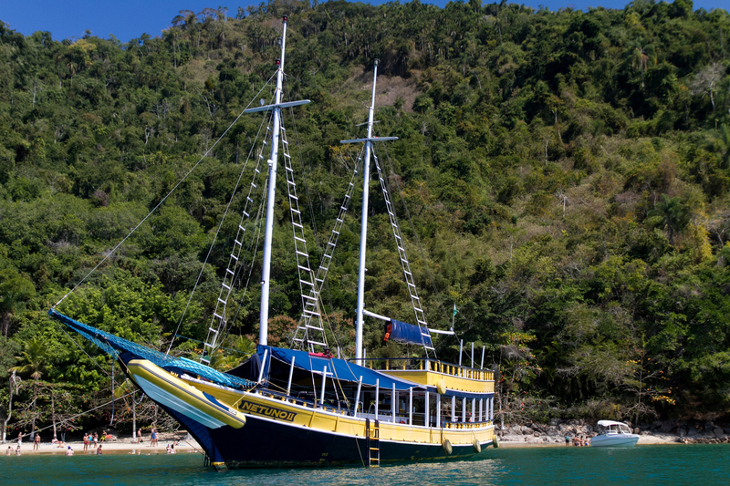 Paseo de barco con comfort para quien desea relajarse en companía de sus amigos y familia con total seguridad. Tenga la experiencia única de navegar entre las más bellas islas y playas de la bahía de Paraty a bordo de Netuno II, conocendo el itinerario Lagoa Azul, en Paraty.