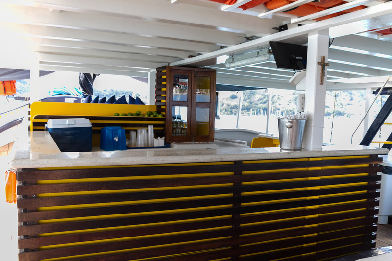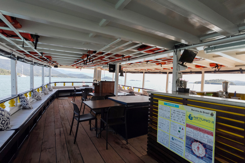La escuna Netuno II tiene capacidad para 120 pasajeros, segundo piso con reposeras, mesas y sillas, baños femenino y masculino, bar y restaurante a bordo, bote de apoiyo con motor, proporcionando seguridad y confort a nuestrs pasajeros.