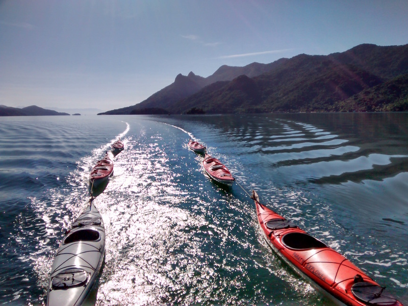 Utilizamos caiaques duplos de fibra de vidro totalmente equipados (com leme rebaixado) feitos para o padrões internacional dos principais fabricantes de caiaque marítimo do Brasil, Ygara Caiaque e Caiaques Opium.